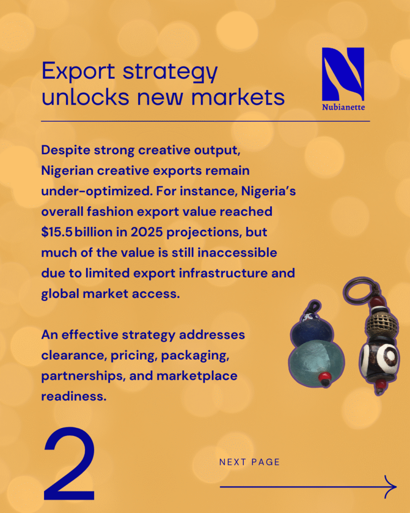 The Nigerian creative economy holds immense potential, but realizing it requires intentional strategies that combine cultural authenticity with market readiness. With structured export frameworks, effective brand positioning, and targeted operational support, African creatives can capture greater global market share and create lasting impact.